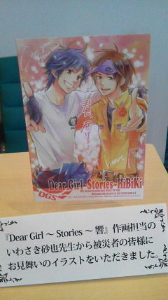 神谷賞はヒロCやオノDが敢えてメインじゃなくって今まで響に登場した女の子達が描かれてあったよ。それを上から二人が見てるって感じだった。描かれてる紙が猫さんの形で可愛かった!!神谷さんはやっぱりDearなGirlのことも考えてくれてるなぁ。